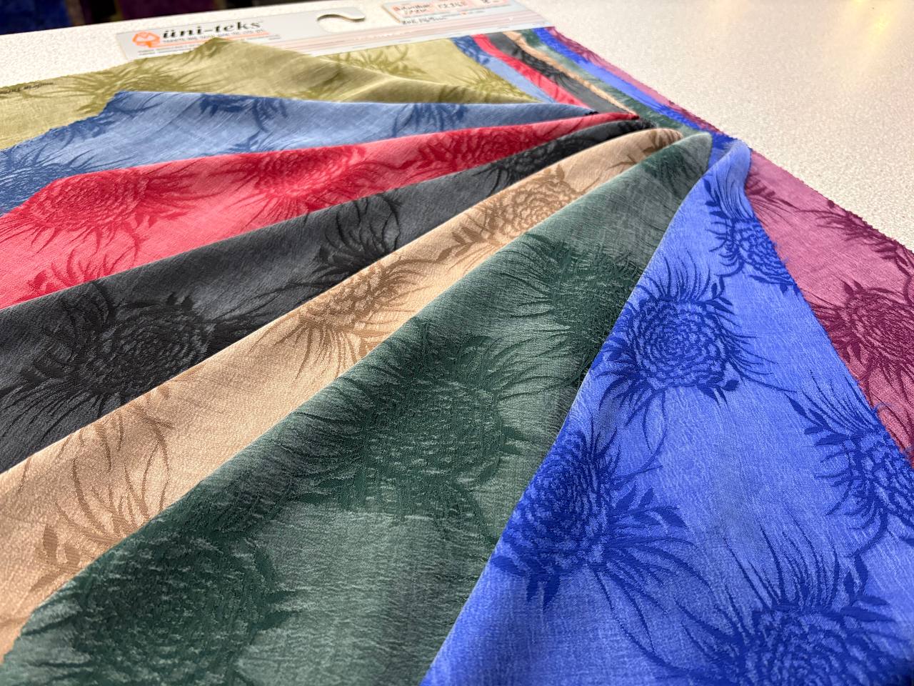 Ürün yelpazemiz temelde; 100% doğal elyaf(viskon, floş, cupro vb.) dokuma, ithal kalite, baskılı ve düz boyalı kumaş imalatına dayanmakta, çift-en(150 cm. eninde) ile tek-en(90 cm. eninde) kumaşların her ikisini de kapsamaktadır. Kumaşlarımızın tamamı bayan dış giyimine yöneliktir. Kumaşlarımız atölyeler vasıtasıyla elbise, etek, pantalon, bluz gibi hazır giyim ürünlerine tasarlandığı gibi terzilik zanaatıyla şalvar ve elbise gibi geleneksel giyim ürünlerine de hazırlanabilmektedir.